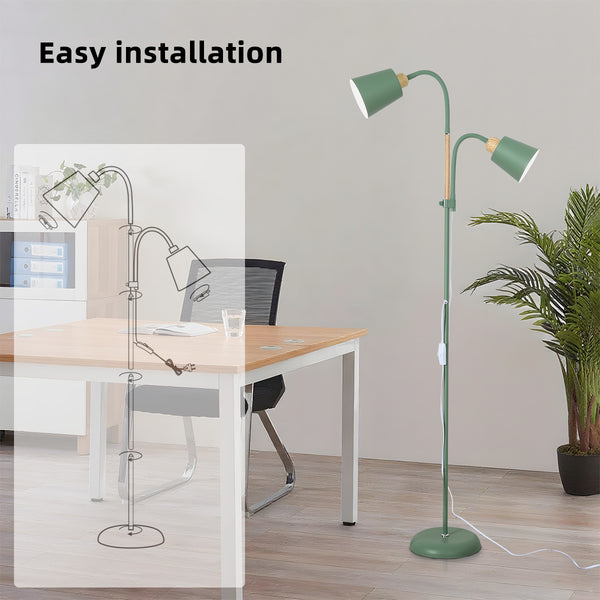 ANTENLICHT YOYO Stehlampe mit leselampe | E27 Fassung max. 60W | 360° schwenkbare Stehleuchte mit 2 Lampenköpfen | Vintage Modern Metall Stehlampe für Wohnzimmer | Höhe 159cm Grün ohne Birne [Energieklasse A+]